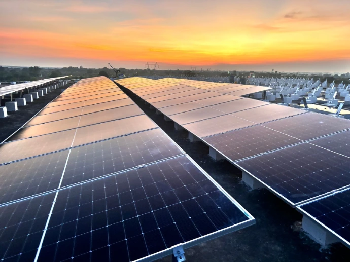 Solar panels glistening under the sun, representing innovation and sustainability.